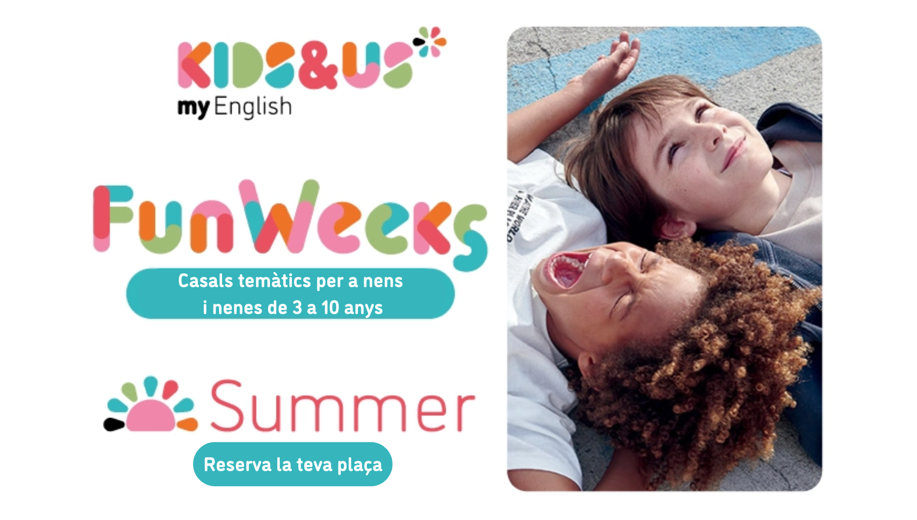 Les Fun Weeks són casals temàtics d’una setmana organitzats per Kids&Us. Són dirigits a nens i nenes de 2* a 10 anys (2* anys només per alumnes de Linda) amb l’objectiu de facilitar-los el contacte amb l’anglès durant els períodes de vacances, fent servir la metodologia d’aprenentatge de Kids&Us.